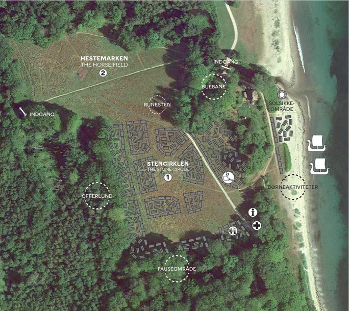 The Viking site is located near Moesgaard Beach. You can locate activities using the maps displayed on-site, or download (and print) a map here.